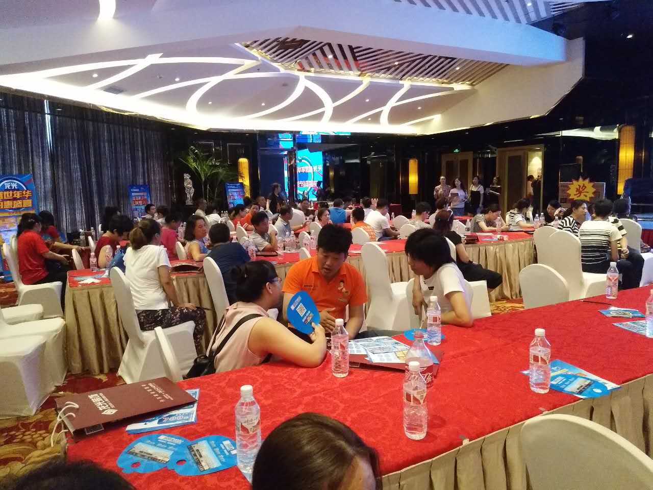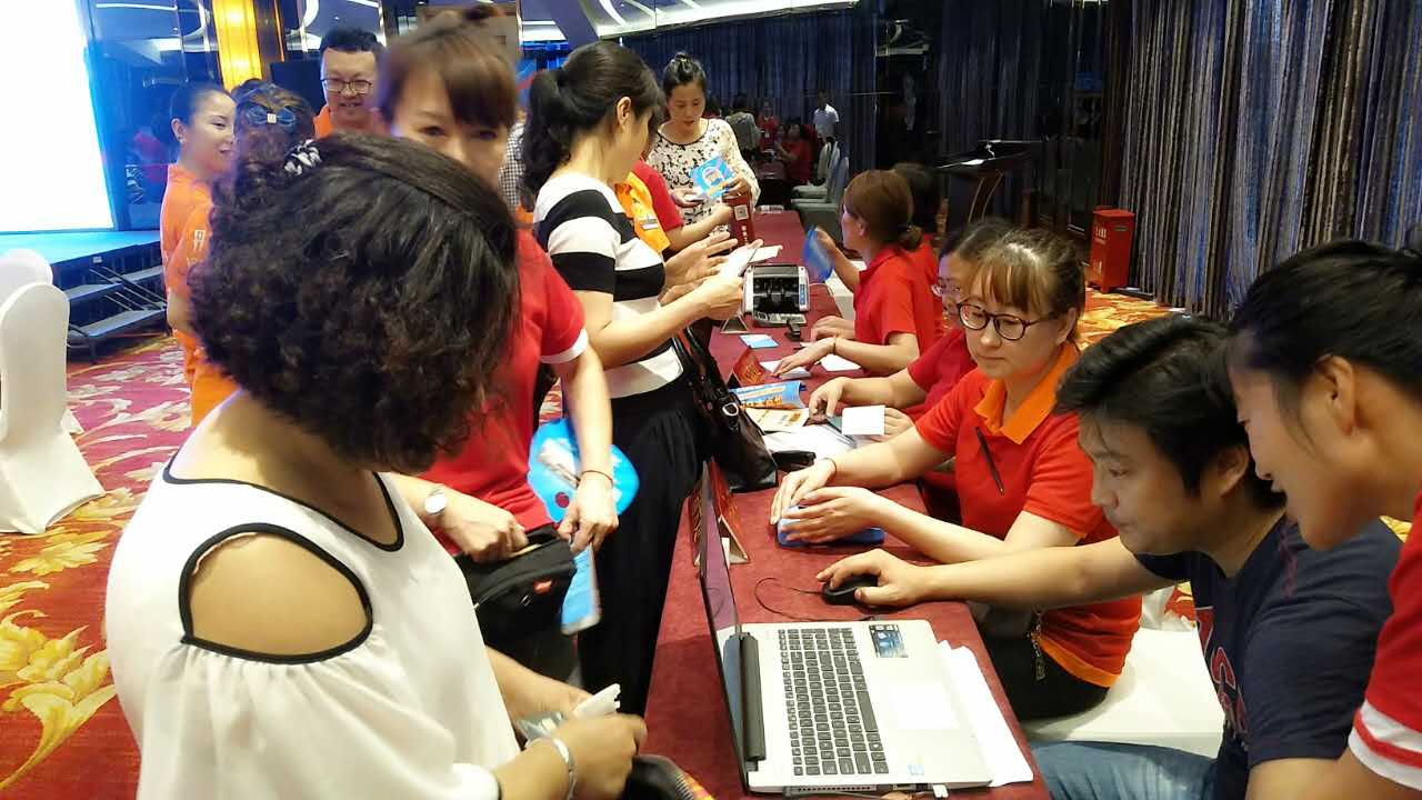 忙碌的工作人员抓紧时间为客户讲解优惠政策