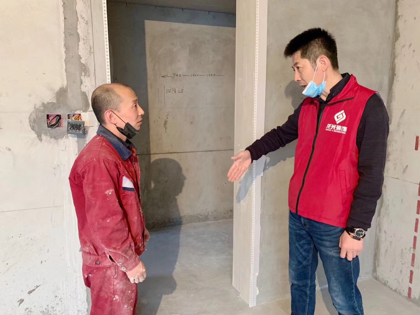 董事长在工地给工人师傅现场培训讲解工艺