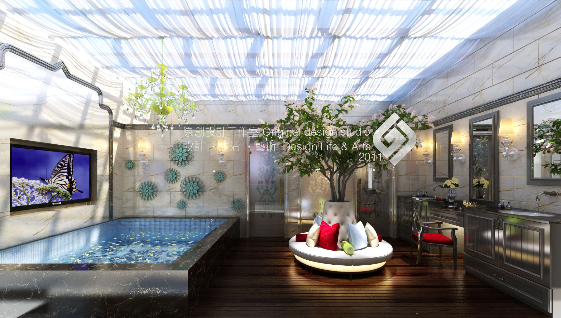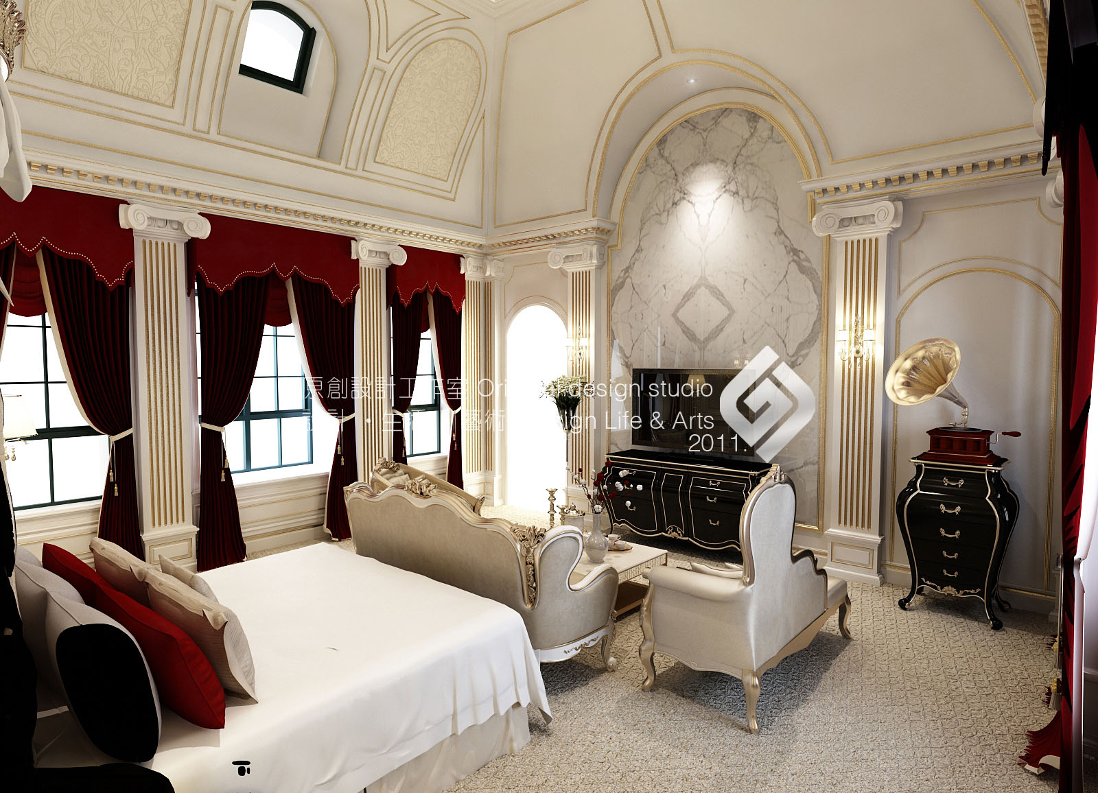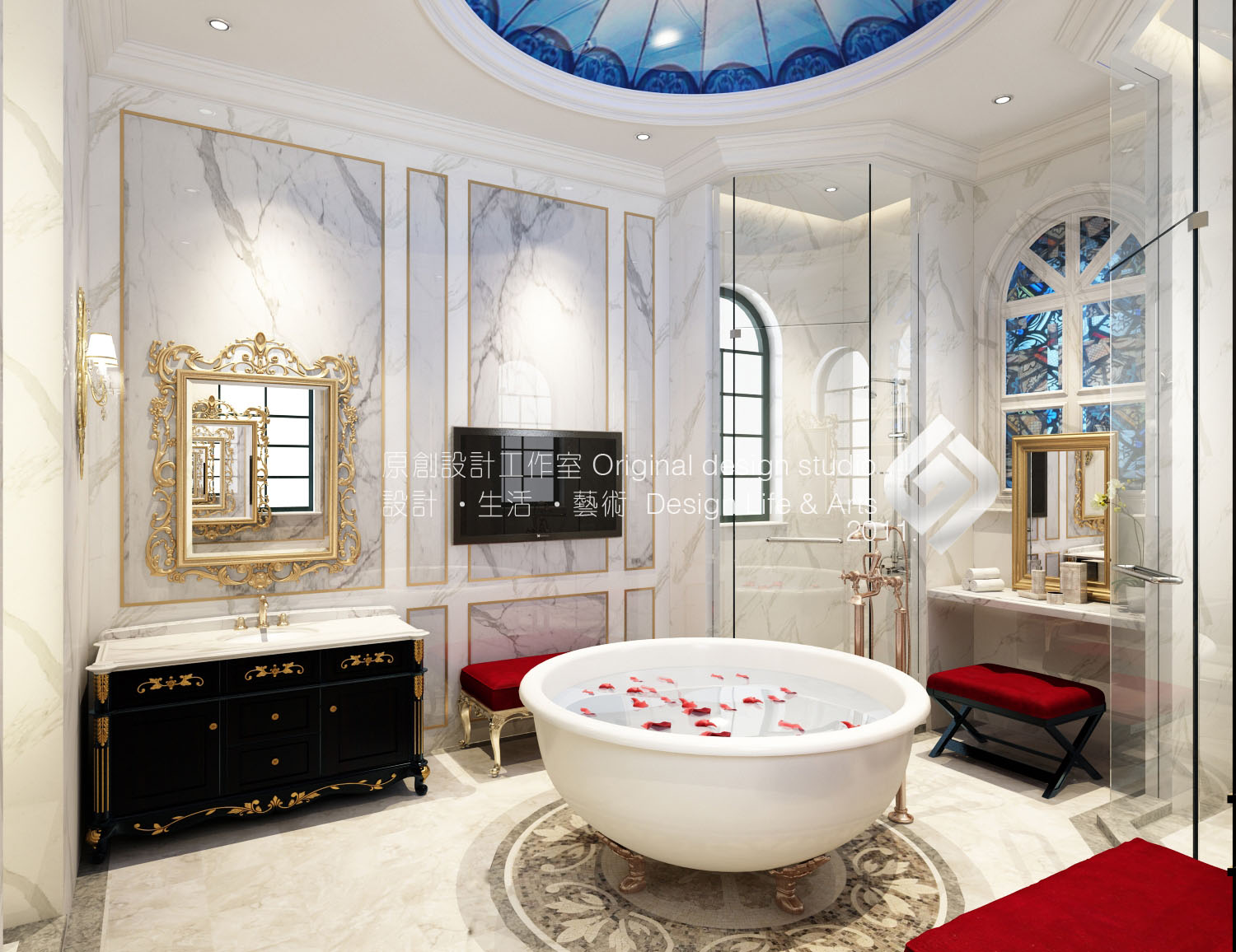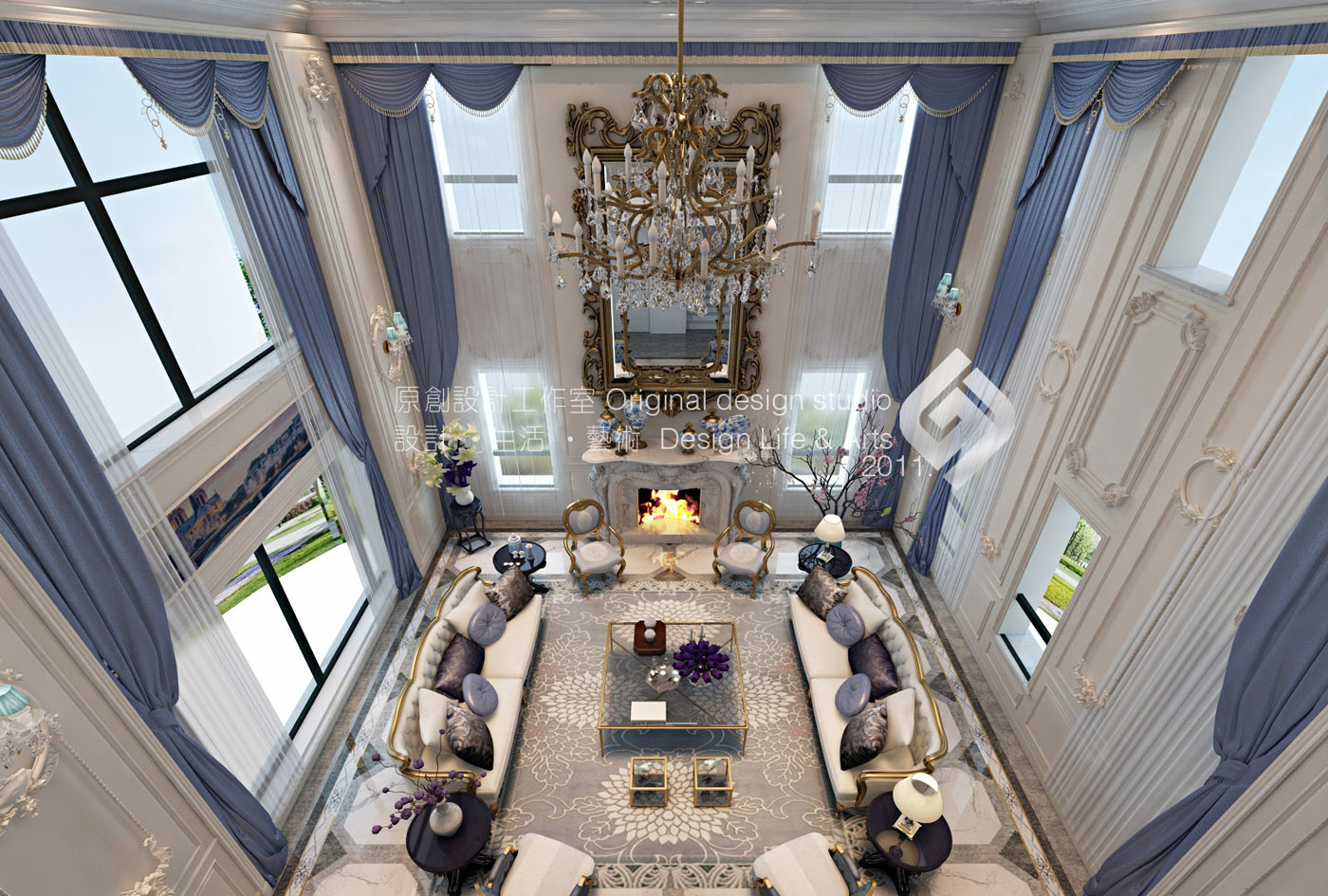 本案立意《塞纳河畔》,设计师以法式原有的华丽风格作为主线,结合普罗旺斯的浪漫情怀。保留原风格的文化内涵及细腻的材质和丰富的细节。并结合现代元素改变其繁复的造型,赋予一种全新的语言,使之既有贵族气质又兼顾现代人的使用及审美。