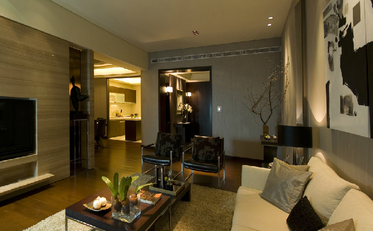 此居室整体采用中性色调,稳重,大气,却又不失品位,有令人眼前一亮的感觉。最重要的是强调功能性设计,线条简约流畅,色彩对比强烈,这是现代风格家具的特点,能给人带来现代、时尚,大气的感觉。由于装饰元素少,以软装去营造家居空间,要给居室留下变换的空间,与现代风格的硬装进行配合,才能显示出美感。例如沙发需要靠枕、茶几需要地毯、餐桌需要餐布、床需要窗帘和床单陪衬等,软装搭配是现代风格家具装饰的重点。